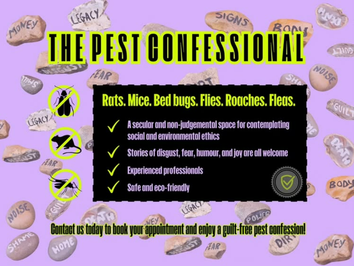 The Pest Confessional is a secular and non-judgemental space for contemplating social and environmental ethics.